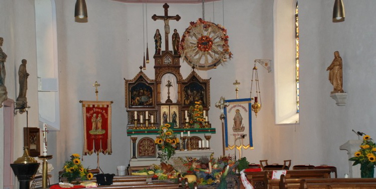 Für die gute Ernte und mit viel Liebe zum Detail arrangierten die beiden Landfrauen Monika & Monika aus Blankenheimerdorf am Altar zu St. Peter und Paul in Blankenheimerdorf einen schönen Ernte-Dank-Altar. Unser Dank ist ihnen gewiss!